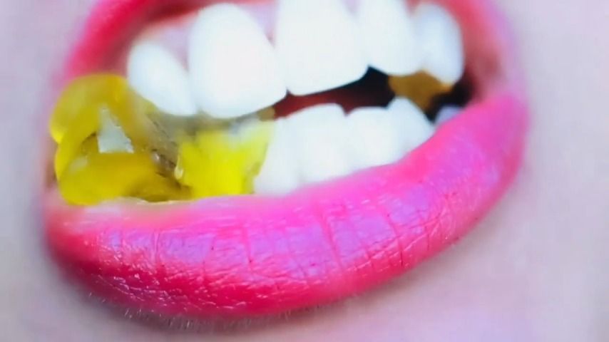 asmr, chewing, chomping, gummies, mouth fetish, sfw, teeth, vore